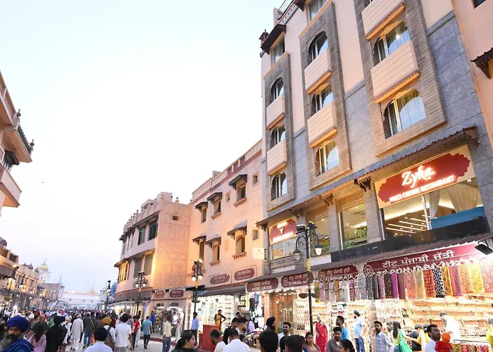 Offering currency exchange and a tour desk, Abode By Aliste Hotels- 2 Minutes Walking To Golden Temple, Amritsar is nestled just 5 minutes' walk from the prominent Dukh Bhanjani Ber Tree Sikh Gurdwara and 1.2 km from Khairuddin Mosque. Located 2.5 km from the monumental red stone Gandhi Gate, this 3-star hotel features 24 rooms with views of the city.